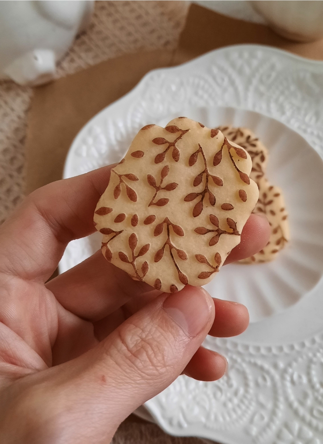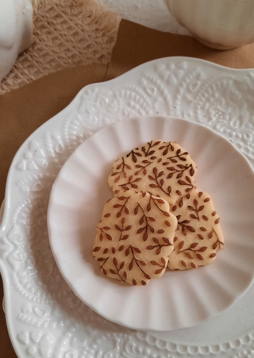 با این استنسیل برگهای کوچولو میتونی به کوکیها و دسرهات یه حس بهاری و لطیف بدی 🍃 کافیه استنسیل رو روی خمیر یا سطح صاف بذاری و با پودر، رنگ خوراکی یا آیسینگ طرح رو منتقل کنی